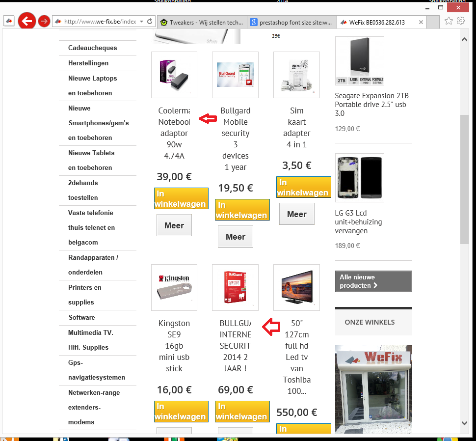 Michstuff Posted March 3, 2015 Share Posted March 3, 2015 When i hover over an article the price goes on top of the picture and the yellow button tekst turnes blue..(the buttons should be just blue and when hover ove some lighter blue) also when i make the page size smaller or watch my site on an pc with lower resolution than full hd there is tekst missing from products in front page. also when i click on an product and it has more than 3-4 pictures it overlaps the tekst beside it. Ineed help. can anyone help plx? Website is: www.we-fix.be/index.php Link to comment Share on other sites More sharing options...