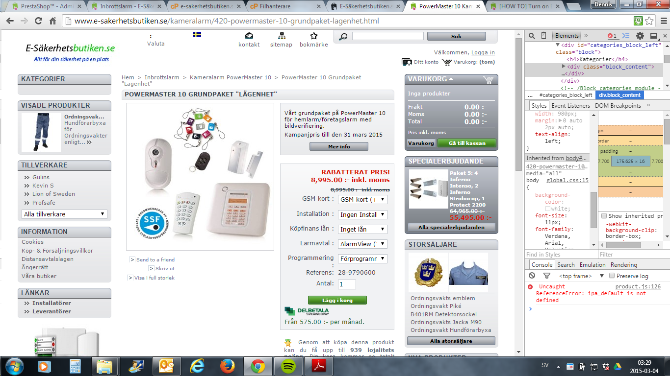 DennisSG Posted March 3, 2015 Share Posted March 3, 2015 It all started with that i can show correct reduced price in the category page but when i go to the productpage it shows the old price, and i haven´t still been able to fix this, but when i tried to fix this i went to -> Preferences tab -> Performance tab and then i choosed "no" in the Cache (under smarty) aswell as i choosed "yes" in Force Compile and after this all the categories on the product page dissapeared. I can´t see any other reason for the categories to dissapear and i´ve tried to search the forum for any answer but i cant find it. Going to update to 1.6 but first i need to get this fixed. If you could help with both problems i would be outmost grateful but my biggest problem is that with the categories doesn´t show. You could see the problem at: http://www.e-sakerhetsbutiken.se/4-kameralarm where you can see the categories and then when you choose "PowerMaster 10 grundpaket for 6 895:-" you come to http://www.e-sakerhetsbutiken.se/kameralarm/420-powermaster-10-grundpaket-lagenhet.html where the original price is shown and all of the categories is gone from the category block. Thank you in advance for any help with my problem. Link to comment Share on other sites More sharing options...
