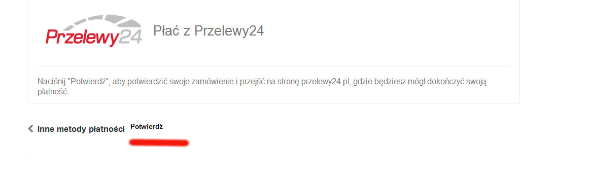 Ostatnia strona przy potwierdzeniu płatności za pomocą modułu informuje o konieczności klikniecia w "Potwierdz".