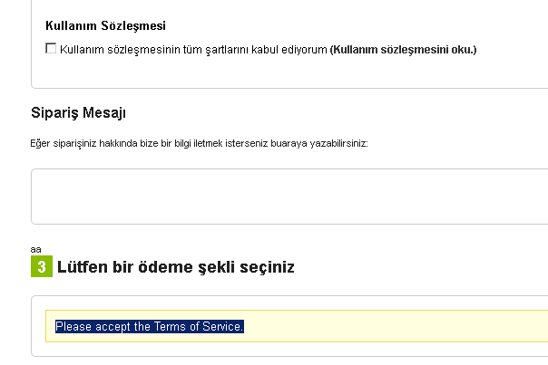 burakco Posted March 9, 2015 Share Posted March 9, 2015 Merhaba; sitemde tek sayfada sipariş alıyorum ve kullanıcı sözleşmesini kabul etmeden ödeme seçenekleri çıkmıyor. ödeme seçeneklerinin olduğu yerde bununla ilgili bir uyarı yazısı var. bu hangi tpl dosyasındadır bilen var mı? order-payment.tpl içinde bulamadım. bahsettiğim yazısı ekteki resimde görebilirsiniz. Link to comment Share on other sites More sharing options...