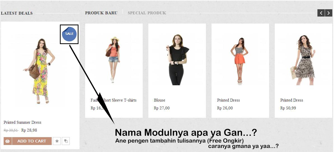 siphil Posted March 10, 2015 Share Posted March 10, 2015 Mohon Bantuannya mastah2... disini ane ingin tanya, ada 2 pertanyaan yg ingin ane tanyakan. tolong dibantu. Pertanyaanya begini : 1. Bagaimana cara memperbesar Font di Ps, dari 11px ke 14px. karena font bawaan Ps hnya 11px (kecil bgt) ngak enak dibaca...? Tolong cara menggantinya dimana...? 2. Bagaimana cara membuat tag sperti (new/sale/discond) Pada foto terlihat seperti ada tanda (new/sale/discond) Yg saya tanyakan bagaimana cara menambah tag tersebut, atau apakah ada modulnya yg bisa di download gratiss....? saya ingin menambah tag (FREE ONGKIR) Ini gambarnya jika blom faham, yg saya kotakin warna hitam... Link to comment Share on other sites More sharing options...