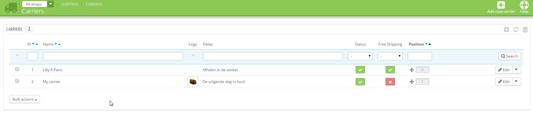 Testtuin Posted April 13, 2015 Share Posted April 13, 2015 Koen, you are right. After the update all my shipments were for free, but I could not found out the issue. I spend a lot of time changing my carrier settings. Finally, thank you Koen, I found out one click can solve the problem: - go in the menu to stock (voorraad) - click warehouse (magazijn) - scroll down and add your carrier and save it. Link to comment Share on other sites More sharing options...