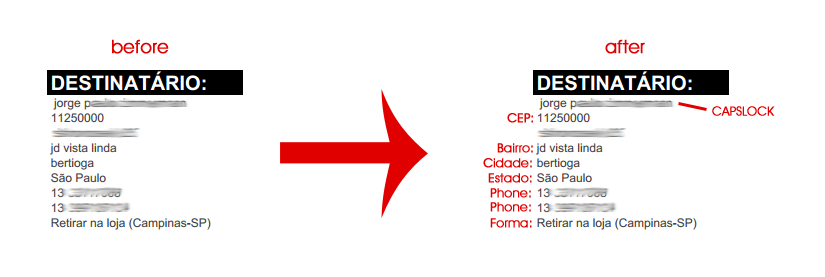 tuk66 Posted March 12, 2015 Share Posted March 12, 2015 It is not so easy. The address is formatted according to Address format settings in AddressFormat::generateAddress method. You have to replace this method with your own. The same for the upper case name. The other way (not free) is to use the M4 PDF Extensions module where you can freely compose everything in the template (and only template). Link to comment Share on other sites More sharing options...