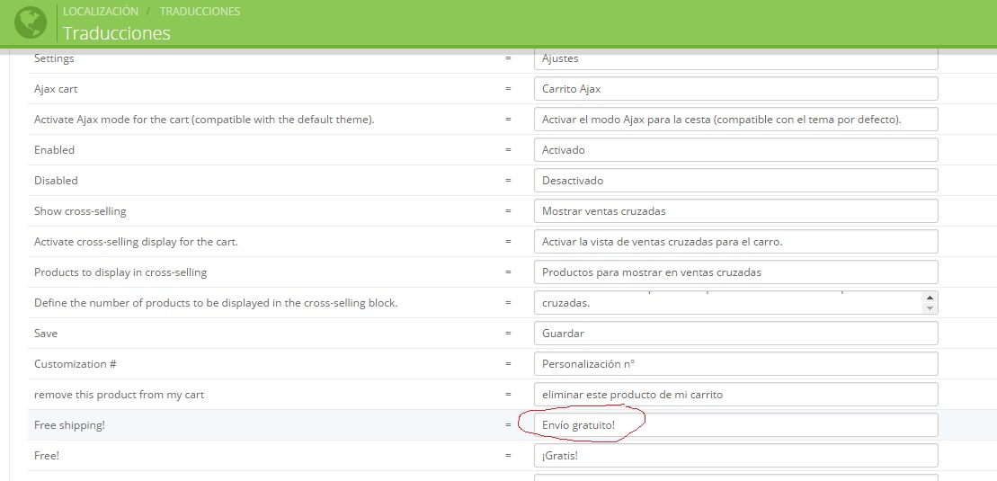 Sergio-algimia Posted March 14, 2015 Share Posted March 14, 2015 Por si te sirve mas detalle: >Localizacion >Traducciones -Modulos Instalados - Idioma español - Modificar. BLOCKCART Link to comment Share on other sites More sharing options...