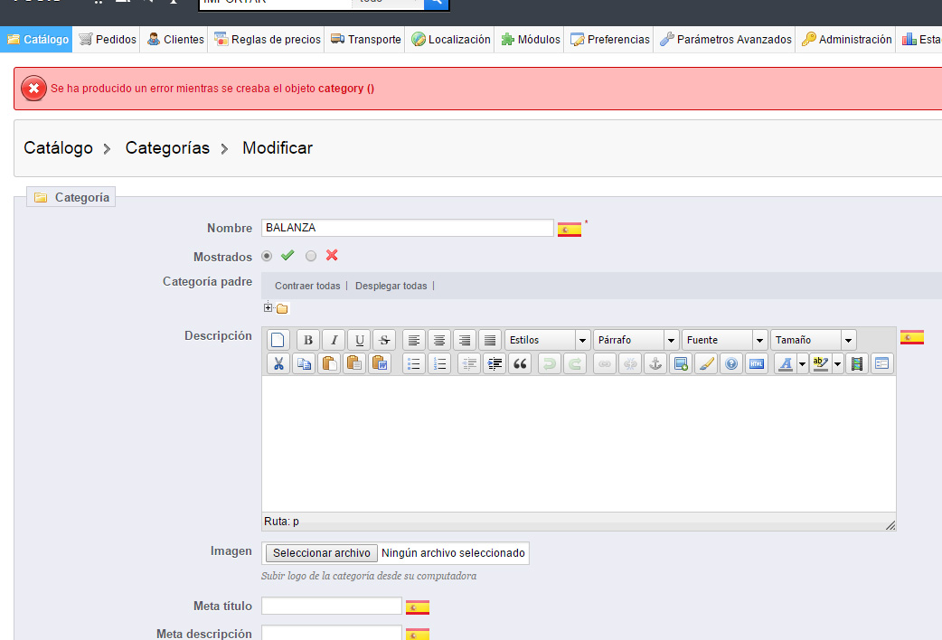 balance Posted March 12, 2015 Share Posted March 12, 2015 He realizado un truncate para reiniciar los id de las categorías, y ahora no puedo crear nuevas categorias. Me salta un "letrero" indicando: Se ha producido un error mientras se creaba el objeto category () Adjunto pantallazos de prestashop y de la tabla categorías para ver si me podéis ayudar. Gracias Link to comment Share on other sites More sharing options...