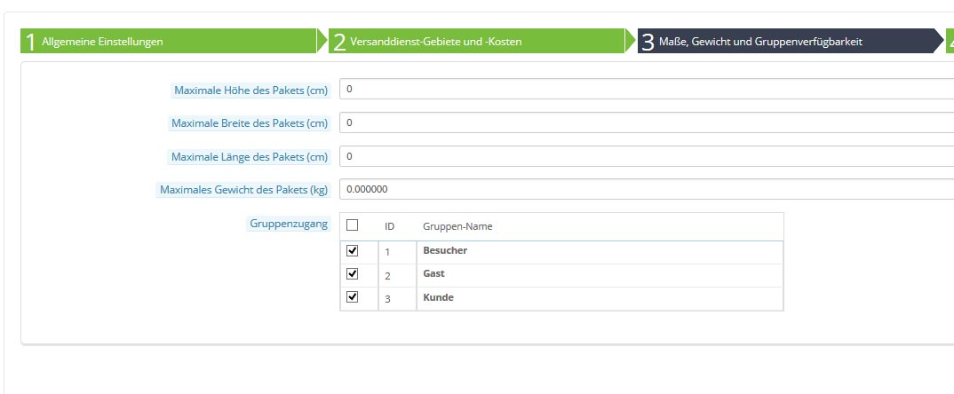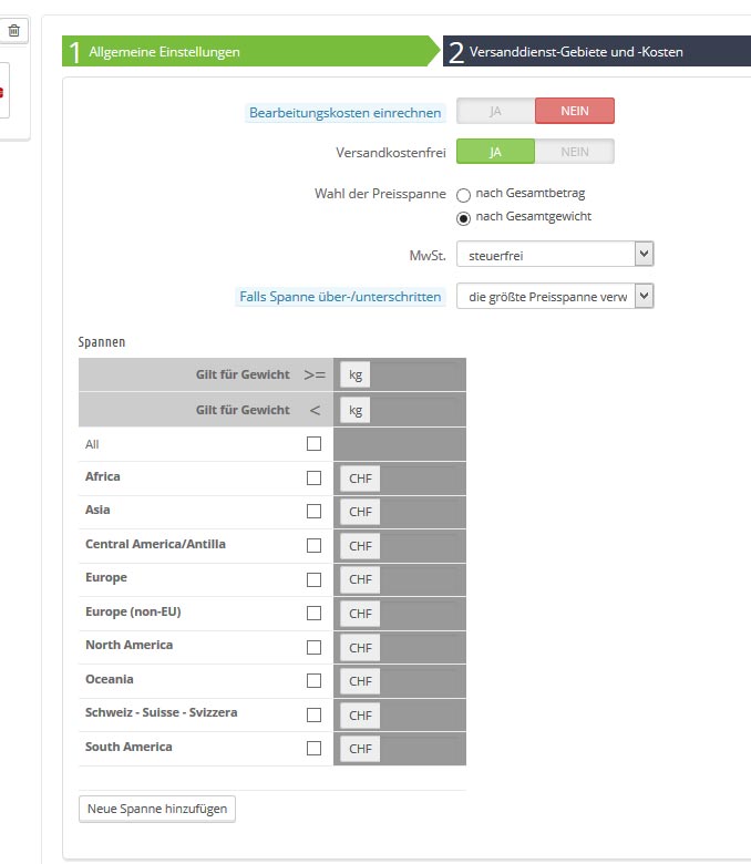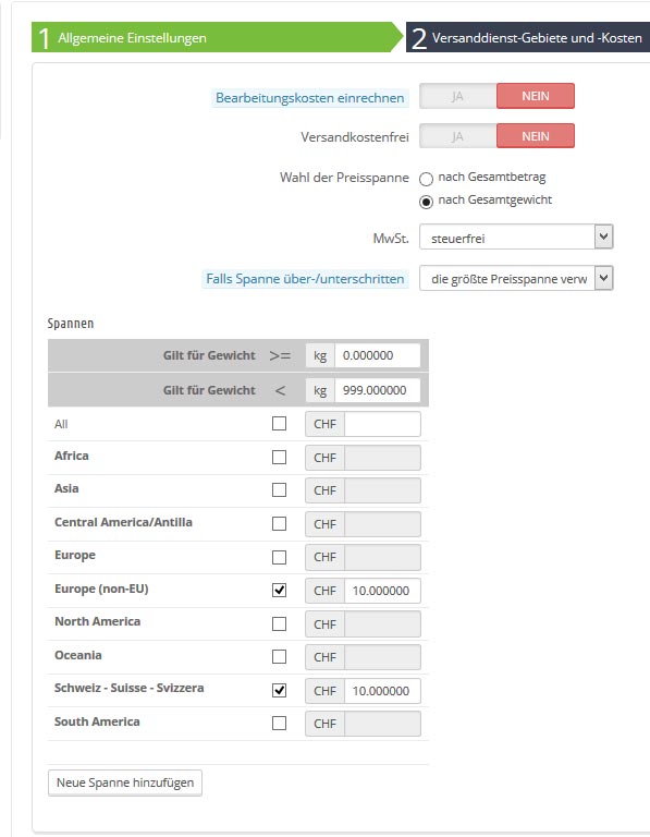 kulli Posted March 13, 2015 Share Posted March 13, 2015 (edited) Versuch mal folgendes: bei der Preisspanne mindesgewicht hinten ne 1 also 0.00001 wenn das nicht hilft leg einen separaten Versanddienst für die Schweiz an, also nicht-EU und Schweiz getrennt, vielleicht kollidiert das, weil ja schweiz ursprünglich auch im Gebiet nicht-EU ist. Bei Abholung für Käufer ist kein gebiet zugewiesen - einfach all zuweisen Edit: und poste auch mal deine Versand-Voreinstellungen welche presta-version? (Edit2: vielleicht auch mal ein paket-maximalgewicht eintragen - aber das kanns nicht sein) Edited March 13, 2015 by kulli (see edit history) Link to comment Share on other sites More sharing options...