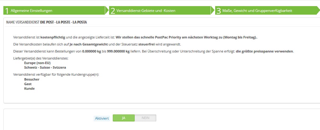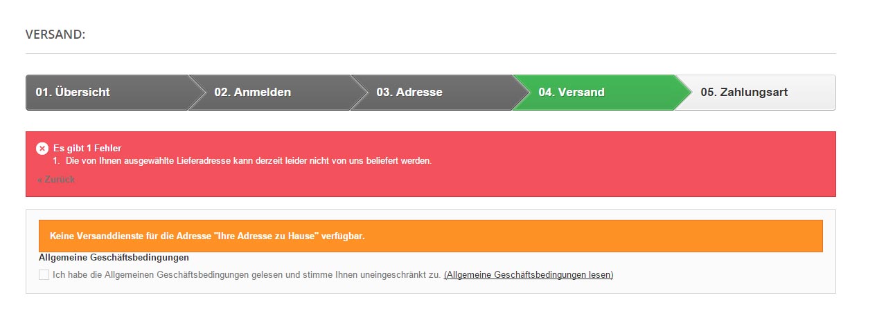 Birel34 Posted March 12, 2015 Share Posted March 12, 2015 (edited) Hallo und guten Abend an Alle Nachdem ich nun alles Versucht habe, löschen neu erstellen der Versandarten usw. und keinen Erfolg damit erzielt habe, gelange ich mit meinem Anliegen aus Forum. Shop-Adresse: www.lifestyle-shop.ch Mein Shop kann keinen Bestellungen mehr annehmen da beim Reiter Versand nichts mehr geht und folgende Fehlermeldung bekomme: Hier Sind meinen Zwei Versandarten und deren Einstellungen: Normaler Versand per Post: Abholung durch den Käufer: (diese Variante wurde aber nie angezeigt) Besten Dank im Voraus für Eure Hilfe. Herzliche Grüsse Rolando Edited March 13, 2015 by Birel34 (see edit history) Link to comment Share on other sites More sharing options...