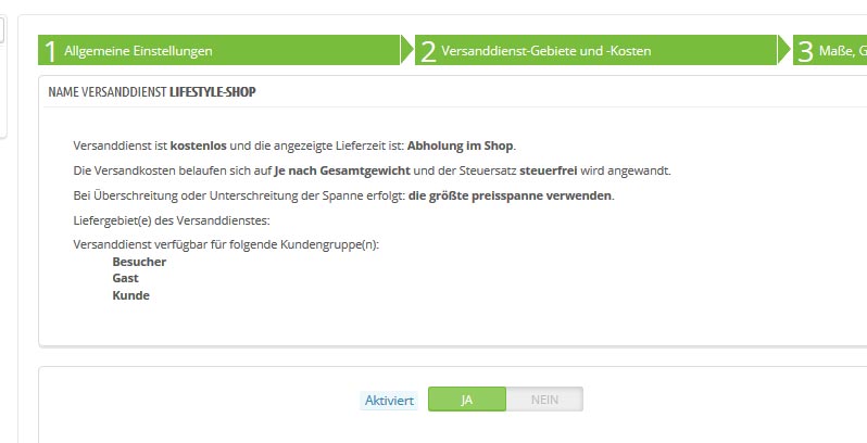 Birel34 Posted March 13, 2015 Author Share Posted March 13, 2015 Hallo kulli Besten Dank für Deine Antwort. Ja das Stimmt, bei der Abholung habe ich die Gebiete zugewiesen und es geht. Danke. Beim Versand mit der Post geht es jetzt auch. Mein Fehler. Nachdem es mit Abholung nicht klappen wollte, habe ich auch mal den Postversand gelöscht und neu angelegt. Alles richtig bis hier hin. Nun die kleine Überllegungslücke!!! Bei den Artikel, in der Bearbeitung, gibts den Reiter/Ordner "Versand", wo man die Einstellungen pro Artikel für den Versand vornehmen kann. Zuerst sind die Parameter für Breite, Höhe, Länge und Gewicht und noch Zusätzliche Versandkosten.Genial gelöst mit den Auswahlen, finde ich super. Danach hat es zwei Felder. Das eine "Verfügbare Versanddienste"und "Ausgewählte Versanddienste" Hier hat man nun die Wahl, für den entsprechenden Artikel auch den entsprechen Versand fest zu legen. Genial... Nun bei mir ist folgender Fehler eingeschlichen, meine Schuld, wenn man nicht alles lesen tut. Unter den beiden Feldern steht noch ein wichtiger Satz: ! Falls keine Auswahl getroffen, werden alle Versanddienste bei Bestellungen angezeigt. Diesen habe ich leider übersehen. Ich habe bei allen Artikeln den Versanddienst zugewiesen, indem ich den Versanddienst angeklickt haben und "Hinzufügen" klickte. Nachdem ich nun unter den Versanddiensten etwas rumgespielt habe, löschen und neu Anlegen,konnte das System keinen Versandienst für alle meine Artikel finden und die Fehlermeldung wie oben beeschrieben stand. Nun kann ich bei allen Artikeln den Vesand nochmals anpassen, alle "Ausgewählten Versandienste" in dieser Spalte entfernen. Fazit: Mann muss effektiv nur einen Versanddienst hinzufügen, wenn das für einen Artikel speziell gebraucht wird. Ich hoffe dass ich so etwas hellfen konnte. Herzliche Grüsse Rolando Link to comment Share on other sites More sharing options...