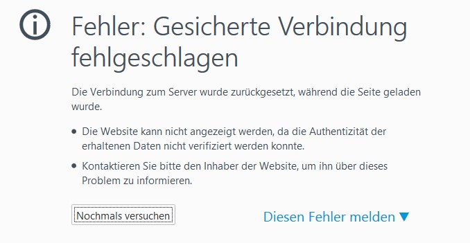 Nasenbaer Posted March 13, 2015 Share Posted March 13, 2015 Kann leider meine Artikel nicht mehr ändern. Bekomme folgende Fehlermeldung: "Fehler: Gesicherte Verbindung fehlgeschlagenDie Verbindung zum Server wurde zurückgesetzt, während die Seite geladen wurde. Die Website kann nicht angezeigt werden, da die Authentizität der erhaltenen Daten nicht verifiziert werden konnte." In den Erweiterten Einstellungen->Systemeinstellung wird mir bei Überprüfung Ihrer Einstellungen: Erforderliche Parameter OK angezeigt. Ich verwende Firefoxund habe gemerkt, dass das Speichern mit dem Internet Explorer funktioniert. Muss also an Firefox liegen. Habe versucht upzugraden (benutze 1.6.0.11). Funktioniert aber auch nicht, da ich das Modul 1-Click Upgrade nicht Installieren kann. Bekomme da immer die Meldung "PS_ADMIN_DIR constant is missing". Gibt es eine Möglichkeit Firefox zu konfigurieren, damit sich das Problem evtl. so lösen lässt? Wäre dankbar für jede Hilfe! Link to comment Share on other sites More sharing options...