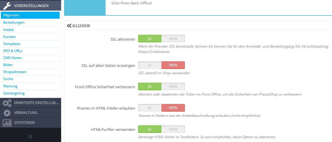 DanGc Posted March 14, 2015 Share Posted March 14, 2015 Hallo, @Martijn: erstmal vielen Dank! Meinst Du damit im BO linke Spalte: Voreinstellungen -> Allgemein -> erster Schieberegler "SSL aktivieren" -> Nein? (siehe Screenshot) Sorry, bin als Newbie der ganzen Sache noch nicht so vertraut Link to comment Share on other sites More sharing options...