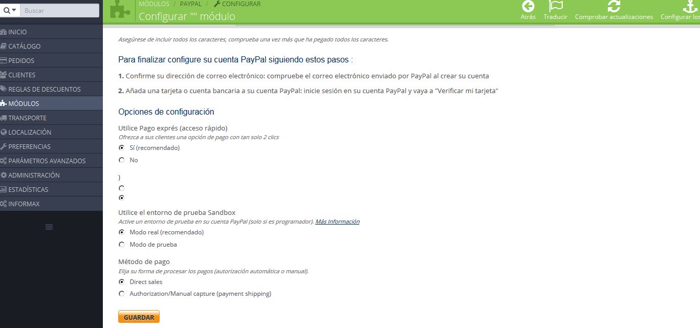 Profon Posted March 13, 2015 Share Posted March 13, 2015 (edited) Buenas a todos. Prestashop Versión 1.6.0.11 Plantilla: Default Tengo la web activa (evidentemente gracias a este foro) desde hace unas semanas y ahora, en las primeras ventas, cuando un cliente me paga por Paypal veo que se hace efectivo el pago en paypal, pero en la web me aparece como carrito abandonado. o sea al parecer paypal no le da la confirmación de pago a la web para poder procesarlo correctamente. He hecho la prueba yo mismo y al hacer el pago, paypal no me redirige a la web. (se me queda página en blanco) A Alguien le ha pasado esto? no encuentro mucha info sobre esto en el foro.. Gracias!!!! Adjunto imagen de la configuración del Módulo: Edited March 20, 2015 by Profon (see edit history) Link to comment Share on other sites More sharing options...