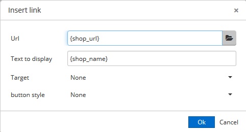 felguard Posted March 18, 2015 Author Share Posted March 18, 2015 (edited) Hi, thank you for the reply. Yes, for the url it's {shop_url} and the text to display: {shop_name} I've attached a screenshot. However, if I insert a link, the {shop_url} stays the same. Whereas, if I just type {shop_url}, it'll change to my Shop URL. For example, if I type "HELLO" and insert the link {shop_url}, in the email sent, the word HELLO becomes a link. But instead of it link to my actual shop URL, it only links to {shop_url}. Where is the {shop_url} in SEO and URL's? Edited March 18, 2015 by felguard (see edit history) Link to comment Share on other sites More sharing options...