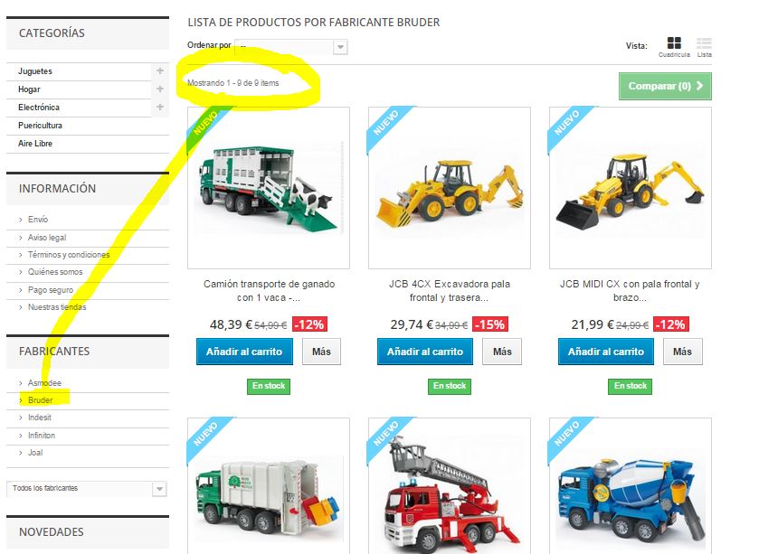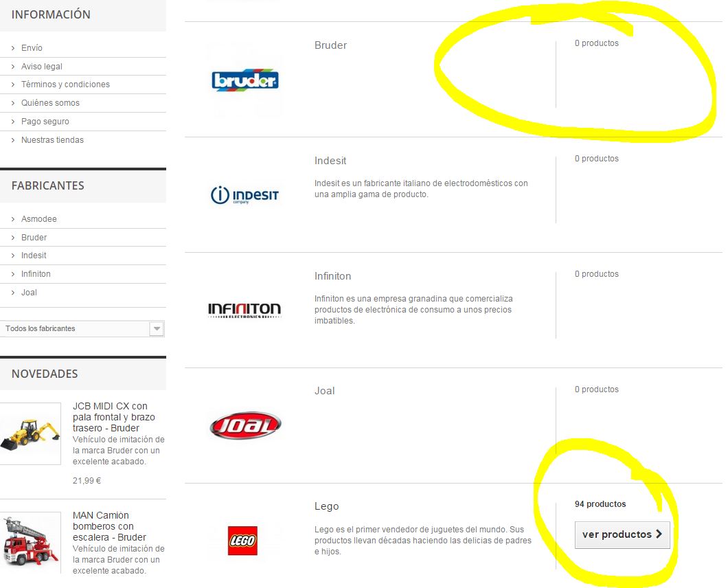 planetajuguetes Posted March 17, 2015 Share Posted March 17, 2015 Hola, cuando accedo a Fabricantes, el recuento de productos por marca lo hace mal. Agrupa todos los productos en un solo fabricante y el resto los deja a 0. Sin embargo, si accedo a un fabricante en concreto (desde el bloque de la izquierda), sí lista sus productos correctamente. Versión PS: 1.6.0.14 Plantilla: default bootstrap 1.0 Url: www.planetajuguetes.es/fabricantes ¿Alguien sabe cómo solucionarlo? Gracias de antemano, Link to comment Share on other sites More sharing options...