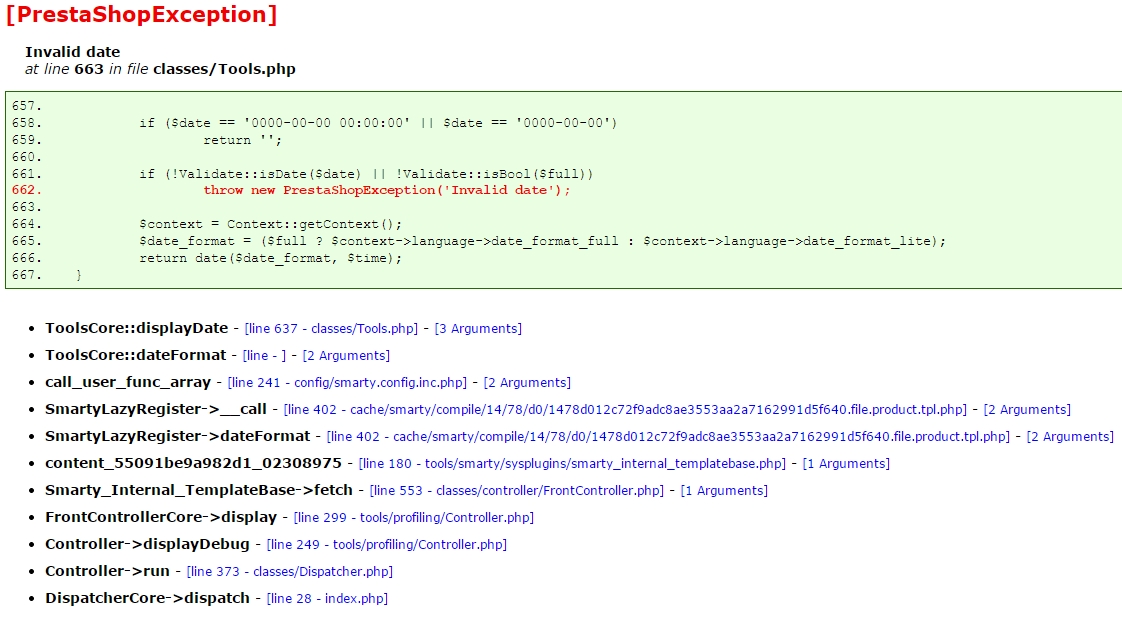 Gregory Roussac Posted March 20, 2015 Share Posted March 20, 2015 Hi, Can you please try to replace for a test this line https://github.com/PrestaShop/PrestaShop/blob/1.6/themes/default-bootstrap/product.tpl#L219 to {p var=$product} {d var=$product->available_date} Please disable profiling too. Thank you. Regards 1 Link to comment Share on other sites More sharing options...
