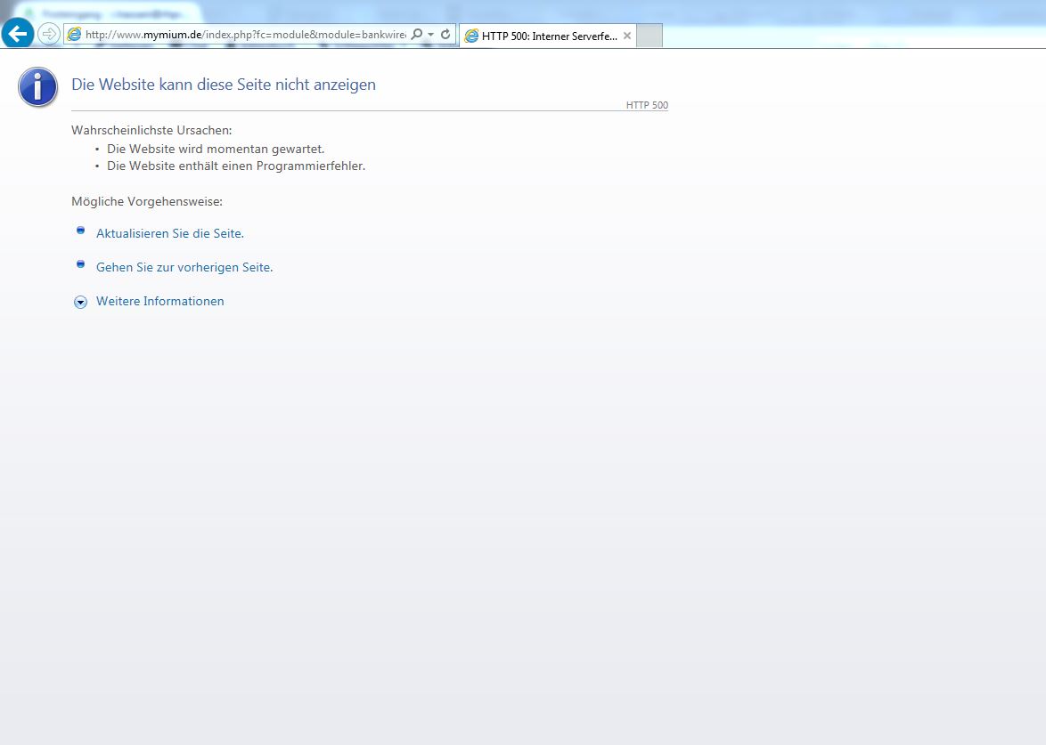 mium Posted March 19, 2015 Share Posted March 19, 2015 Hello Guys, i am new here and also new with presta shop. I am using prestashop since some weeks, and i was wondering why so many people visit the website but almost no orders. Now i found out that in Internet Explorer 11 and Google Chrome when i use Bank Wire or PayPal as payment, there is coming an error. In IE 11 its showing error http 500 and in chrome first nothing and after pressing f5 that cart is empty. On the pictures you can see what it shows me. I really dont know what to do. Please help me .. thanks in advance ramin Link to comment Share on other sites More sharing options...