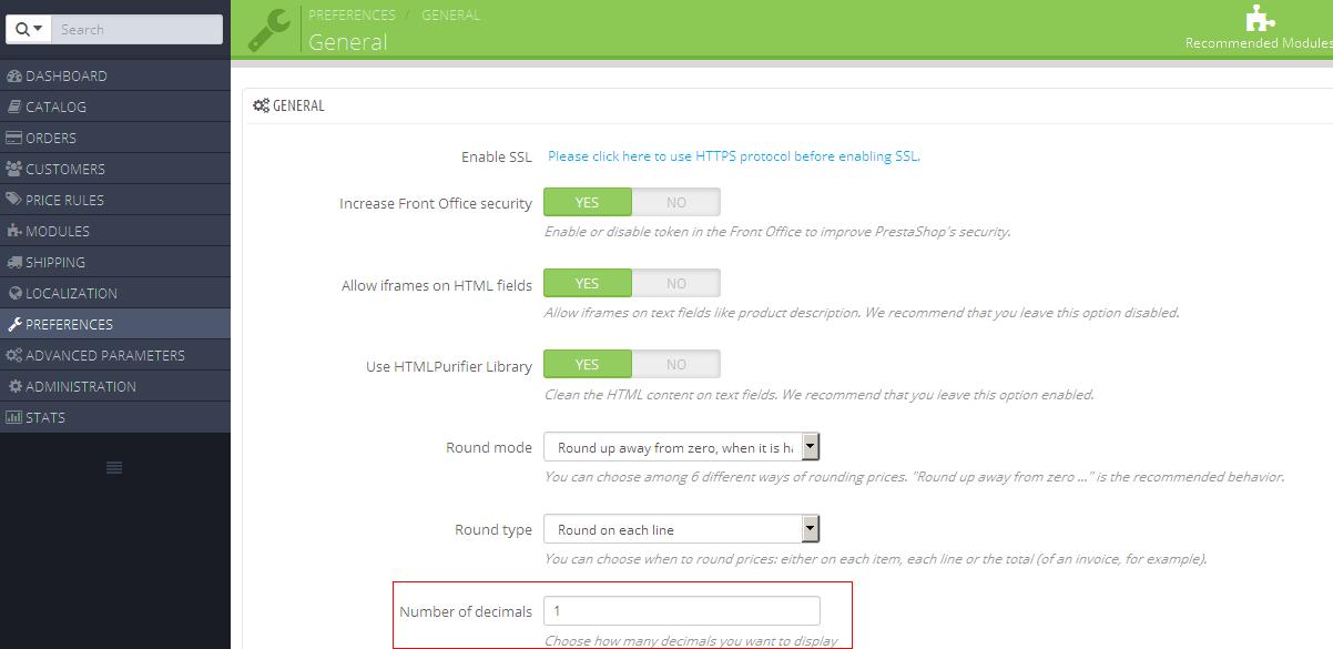 HUHA Posted April 13, 2015 Share Posted April 13, 2015 You can choose how many decimals should prestashop display at the price from here General preferences Number of decimals Choose how many decimals you want to display I hope this is going to help you . Link to comment Share on other sites More sharing options...