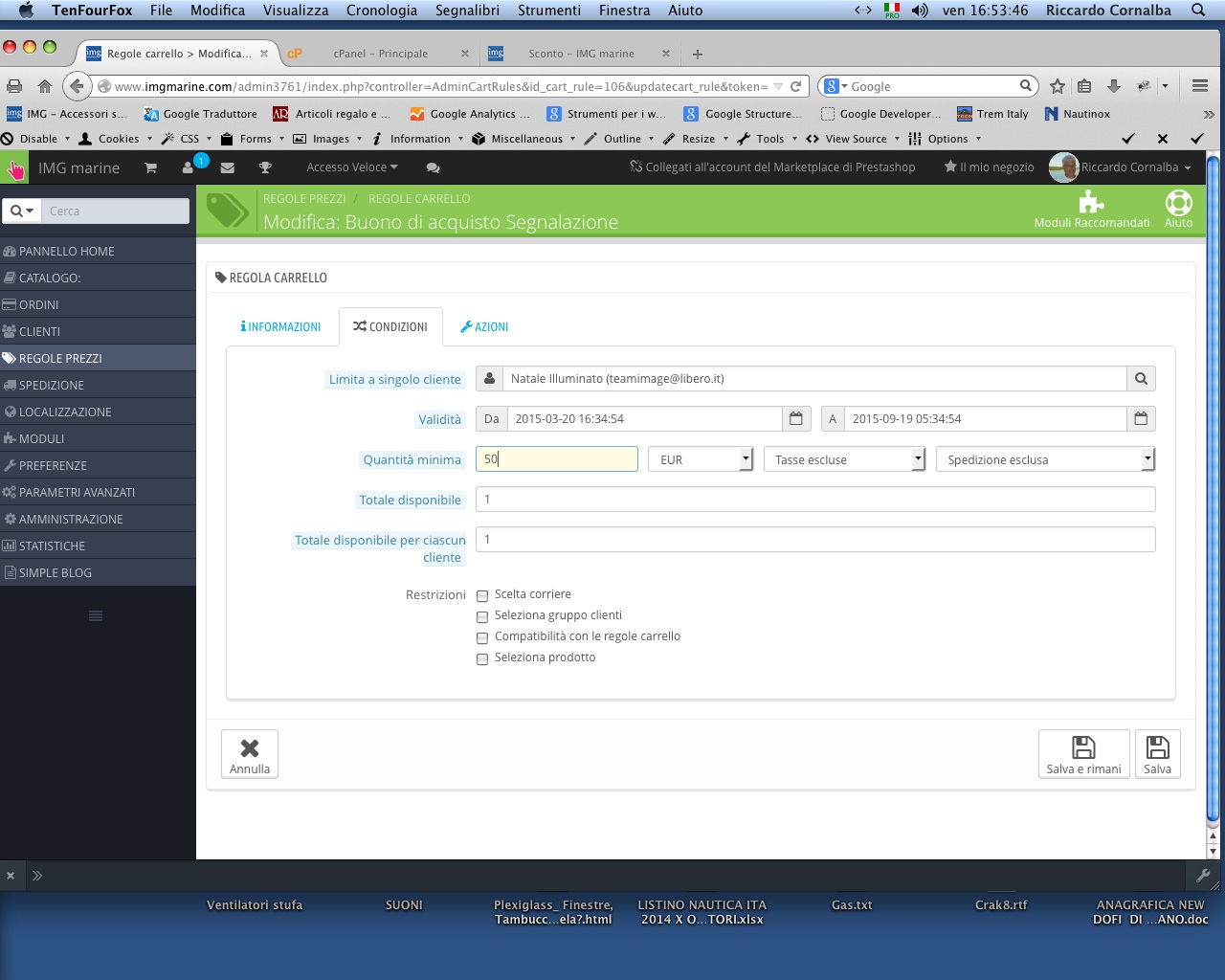 ric154 Posted March 20, 2015 Share Posted March 20, 2015 (edited) Come posso impostare con Referralprogram il valore di acquisto minimo a 50 nella regola dello sconto ? How I can with referralprogram set the value to minimum order at 50 in the rule of the discount ? Edited March 20, 2015 by ric154 (see edit history) Link to comment Share on other sites More sharing options...