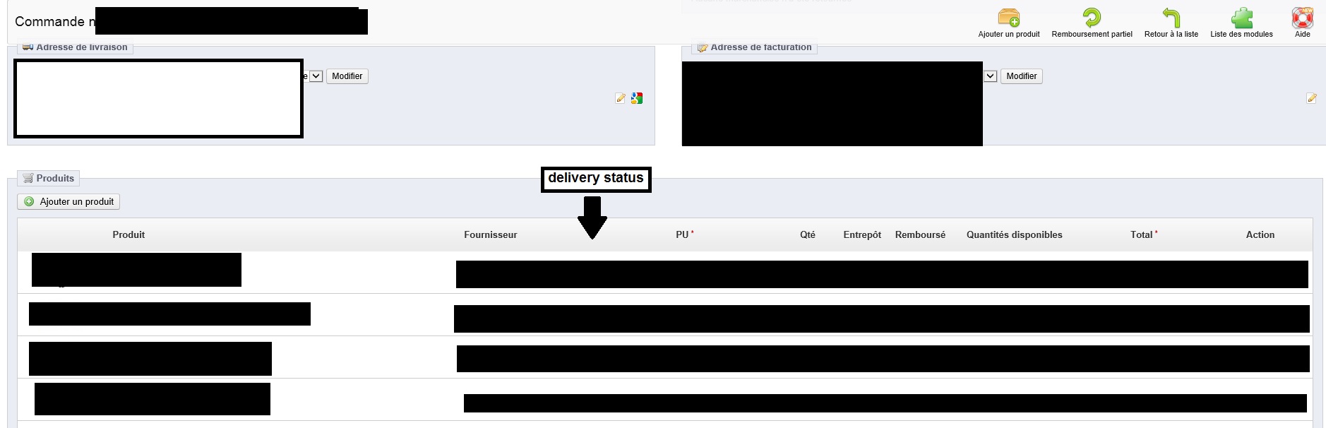 SQ5IZZ Posted March 23, 2015 Share Posted March 23, 2015 (edited) Hello All, I've just started my adventure with Prestashop 1.5. Here is my task: I need to add combo box to order detail (detailed list of ordered products) which will store delivery status for each product in back office . It have have 4 options(preparation in progress, delivery in progress, etc). Many thanks for replies. They will save my life....;-) Jakub I'm attaching the file with planned field. Thanks for comprehension, i have to mask personal data. Edited March 24, 2015 by SQ5IZZ (see edit history) Link to comment Share on other sites More sharing options...
