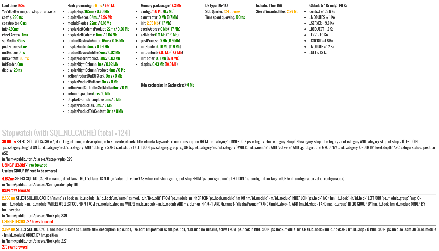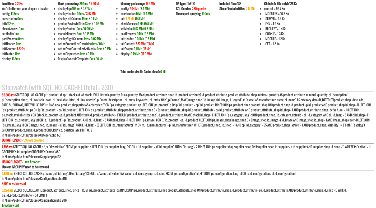 dsnegi Posted March 24, 2015 Share Posted March 24, 2015 Does anyone have seen this problem before Prestashop Category and Product pages are not caching at all and the time it taking to load the data is higher then expected. Please find the attached screenshot for the same. Category Page Profile Product Page Profile Any help/suggestions will be highly appreciated. Thanks, Link to comment Share on other sites More sharing options...