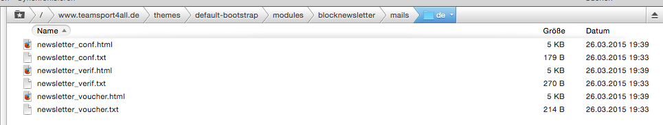 joecool2009 Posted March 26, 2015 Author Share Posted March 26, 2015 (edited) Die NewOrder an den Shopbetreiber habe ich jetzt im eu-legal gefunden und abgeändert, die Newsletter.htm habe ich alle durchgeschaut aber leider nichts gefunden. Ach ja, muss grundsätzlich auf der AB die Lieferzeit vorhanden sein? Bei mir wird sie trotz eu-legal nicht angezeigt. ********* Habe die Datei nun gefunden, es war die newsletter_verif.html, und die war im nachfolgenden Ordner: Warum es diese Datei zerhauen hat ist mir ein Rätsel, aber jetzt funzt es wieder. Aktuell hätte ich nur noch das Problem mit der fehlenden Lieferzeit in der AB, und da finde ich keinen Lösungsansatz im Forum Edited March 26, 2015 by joecool2009 (see edit history) Link to comment Share on other sites More sharing options...