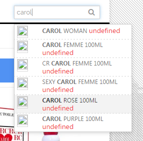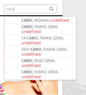 APPWebCode Posted March 30, 2015 Author Share Posted March 30, 2015 Trate de buscar ac_results, prname o "price product-price" en /modules y /themes para encontrar el código y variables, que se fija para "undefined". Try to search for ac_results, prname or "price product-price" in /modules and /themes to find the code and variable, which is set to "undefined". <div class="ac_results" .... ... <span class="prname"> <strong>CAROL</strong> WOMAN <span class="price product-price">undefined</span> </span> ... </div> E seguido los pasos que me as indicado pero sigue igual, ¿hay alguna otra forma?. Link to comment Share on other sites More sharing options...