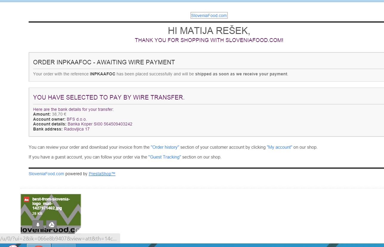 One strange thing happened. I was testing how email system works in Prestashop with confirmation email and so on. Everything worked fine but suddenly I just got one email where logo is in attachment.