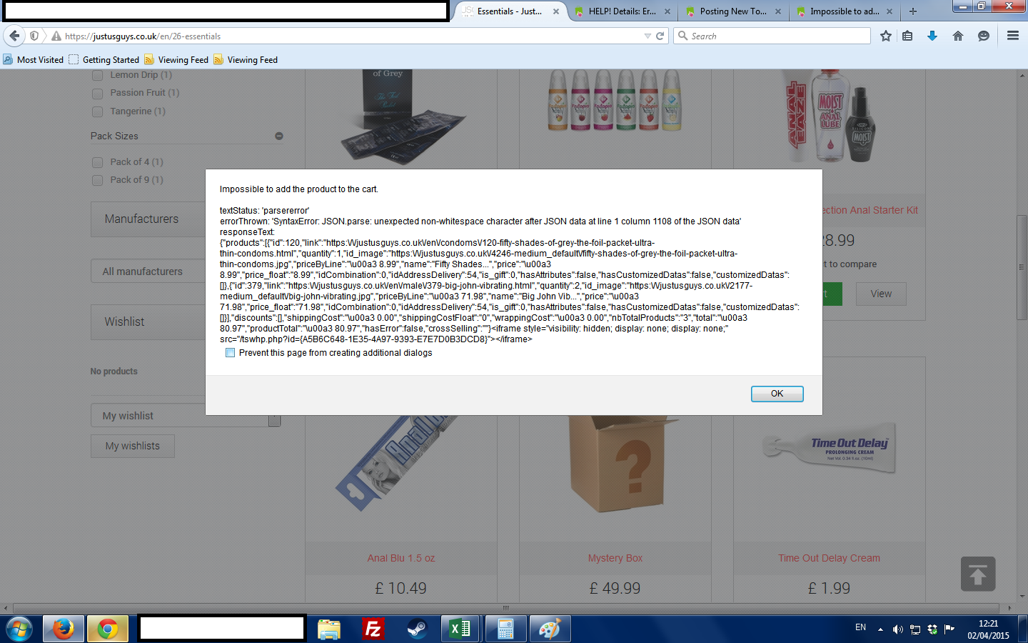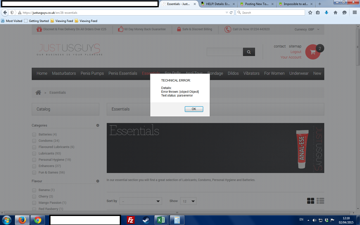 Amatory Posted April 2, 2015 Share Posted April 2, 2015 Hi All, I hope someone can help i keep getting errors on our webiste and customers can not add products to our basket and when you click round the website it gives random errors please see screenshots of the errors i am getting. I have tried it on, Firefox, Googlechrome and internet expl Please someone help i do not know how to fix this and whats causing it Thanks in advance Austin Link to comment Share on other sites More sharing options...
