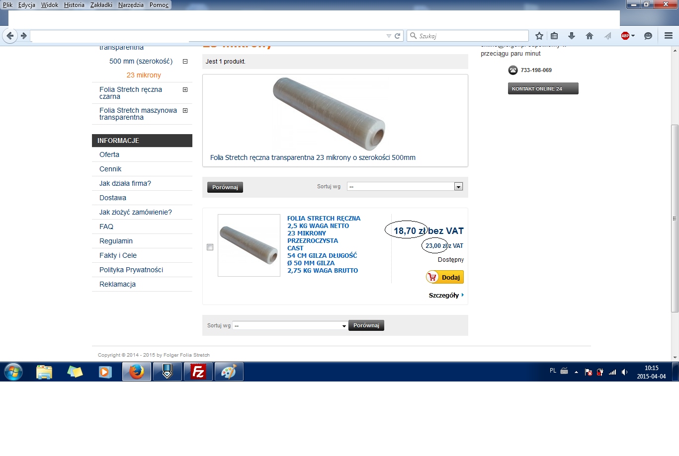 wyswietlaja mi sie ceny netto i brutto na liscie produktów i w produkcie.