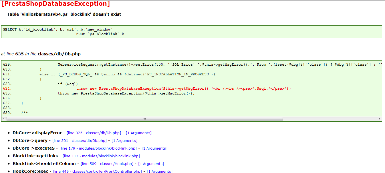 Bea222 Posted April 5, 2015 Share Posted April 5, 2015 Hola, Necesitaría ayuda para solucionar un problema, ya que al intentar entrar a la pagina principal de mi tienda salta el error: (Prestashop Database Exception: Table 'nombredelatienda4.ps_blocklink' doesn´t exist) Adjunto pantallazo del error. Muchísimas gracias. Link to comment Share on other sites More sharing options...