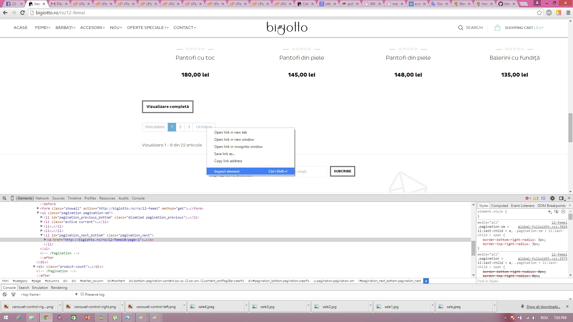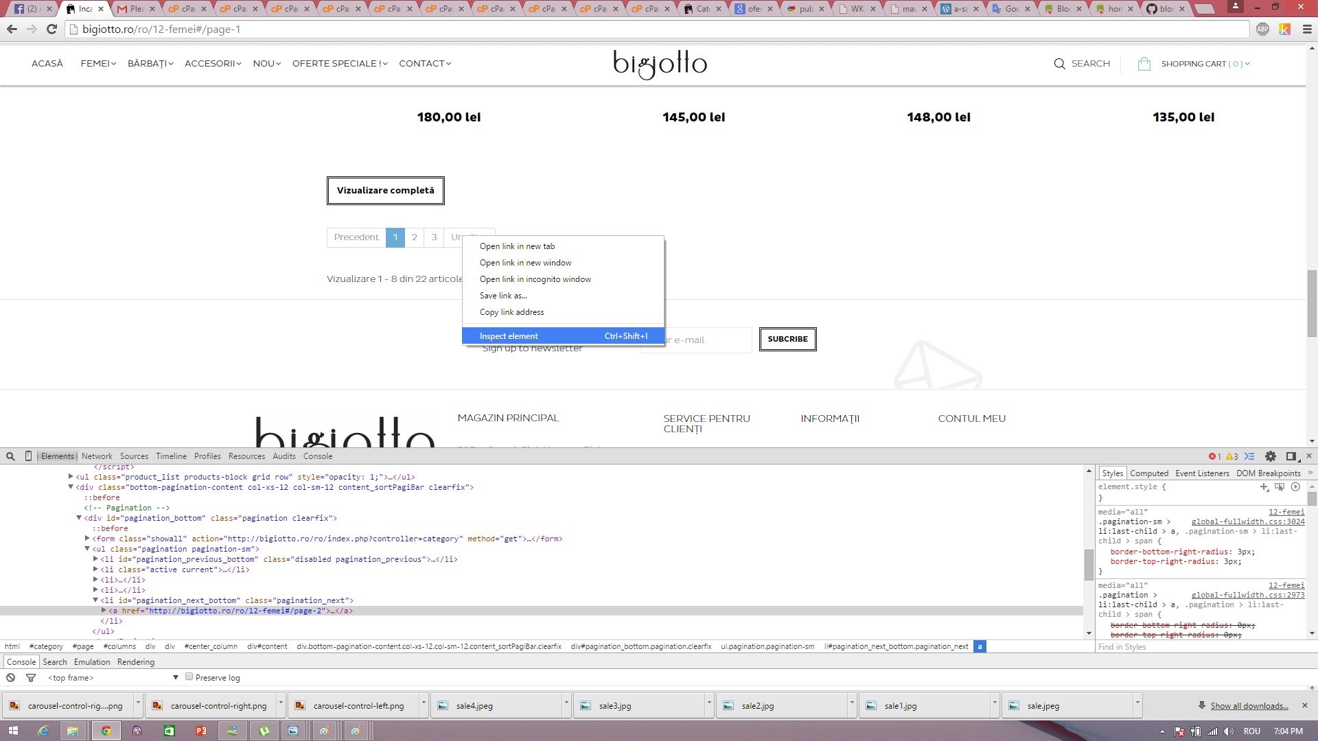 kNife77 Posted April 6, 2015 Share Posted April 6, 2015 Hi, This is an important bug !! Firs time I am accessing a category, let's say Women. So I am here : http://bigiotto.ro/en/12-ladies as you can see in the first photo :pagination.jpg the problem is with the next button ! The link that the button generates is ....#/page-1 BUT I already am on the products first page. So when I click the next button it just refreshes this page and add /page-1 atribute to the url. Now, as you can see in the second picture (pagination1.jpg) the next button generates the correct link /page-2. Please help me to modify the site so when I access a category with many products, and I want to change the page, the NEXT button to generate the link with /page-2 atribute instead of /page-1 Thank you ! Link to comment Share on other sites More sharing options...