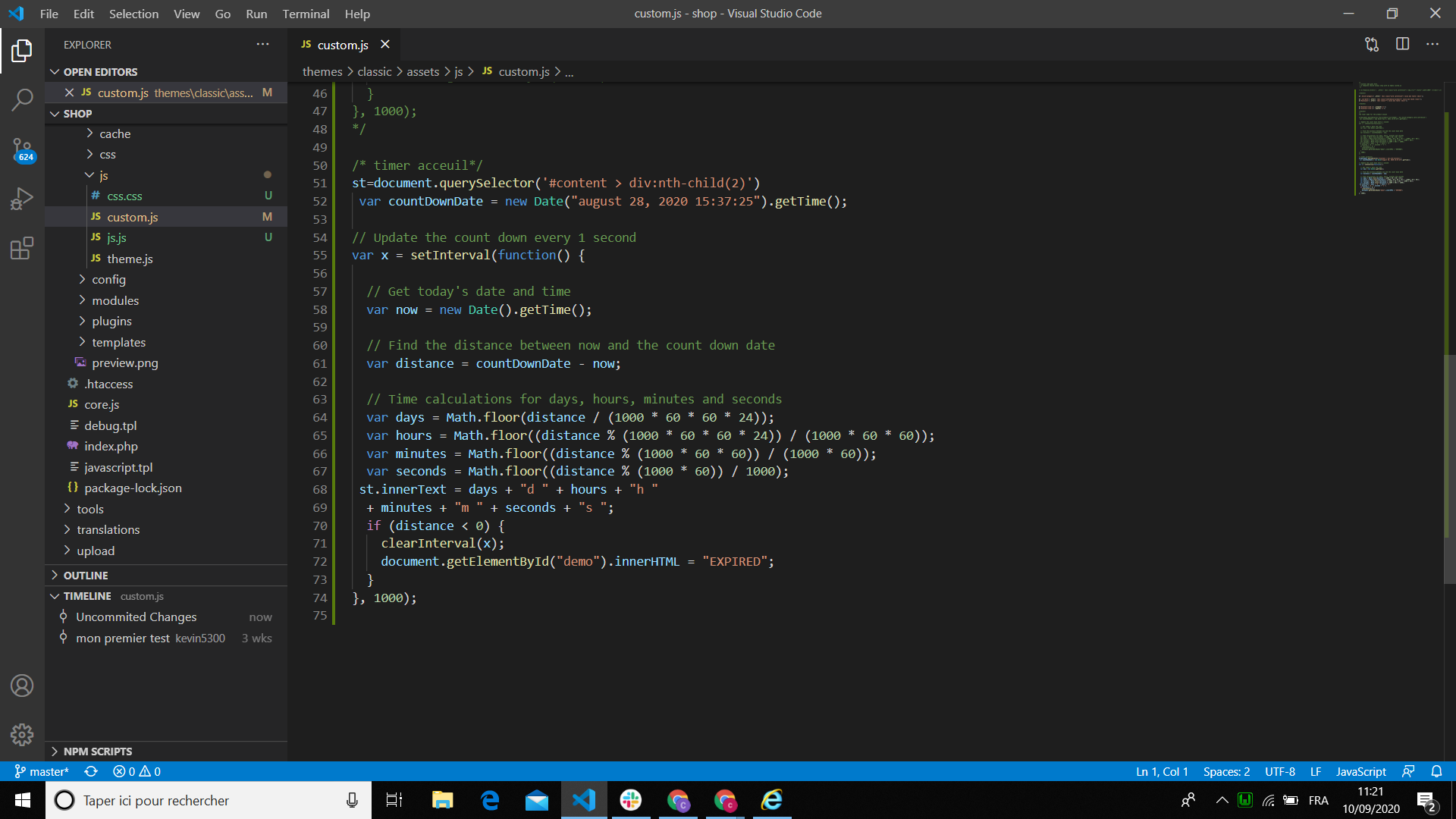 changa Posted September 10, 2020 Share Posted September 10, 2020 (edited) bonjour j'aimerais recuperer les donnees d'une table présicement une date dans la table cart-rule de prestashop j'amerais savoir comment je peux faire pour recuperer cette date j'aimerais la passer en paramètre sur un timer sans etre obliger de prendre cette date chaque fois et la mettre dans mon timer c'est fatiguant et pas pratique du tout j'attend vos suuggestions merci je veux recuperer la date to et le mettre en paratrre dans le timer Edited September 10, 2020 by changa the request was not completed (see edit history) Link to comment Share on other sites More sharing options...