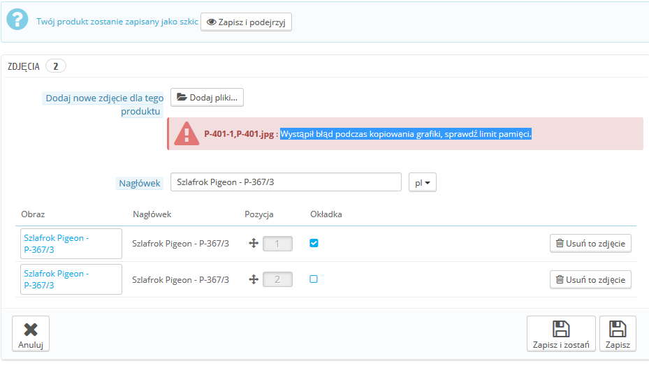 sowiiisz Posted April 7, 2015 Author Share Posted April 7, 2015 Różnie, dodawałem zdjęcie które miały po 2mb i normlanie wchodziły te mają po 1,5mb i nie chcą wejść, teraz ogólnie tak jest z każdym zdjęciem, czy Presta ma jakiś limit danych? Link to comment Share on other sites More sharing options...