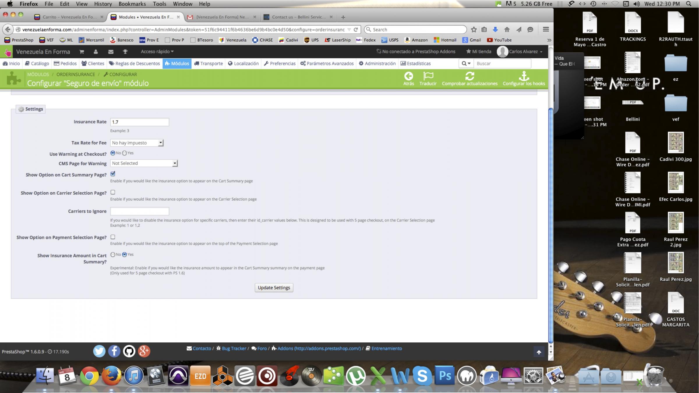 The module works well and it adds the extra insurance charge to the total amount at checkout.