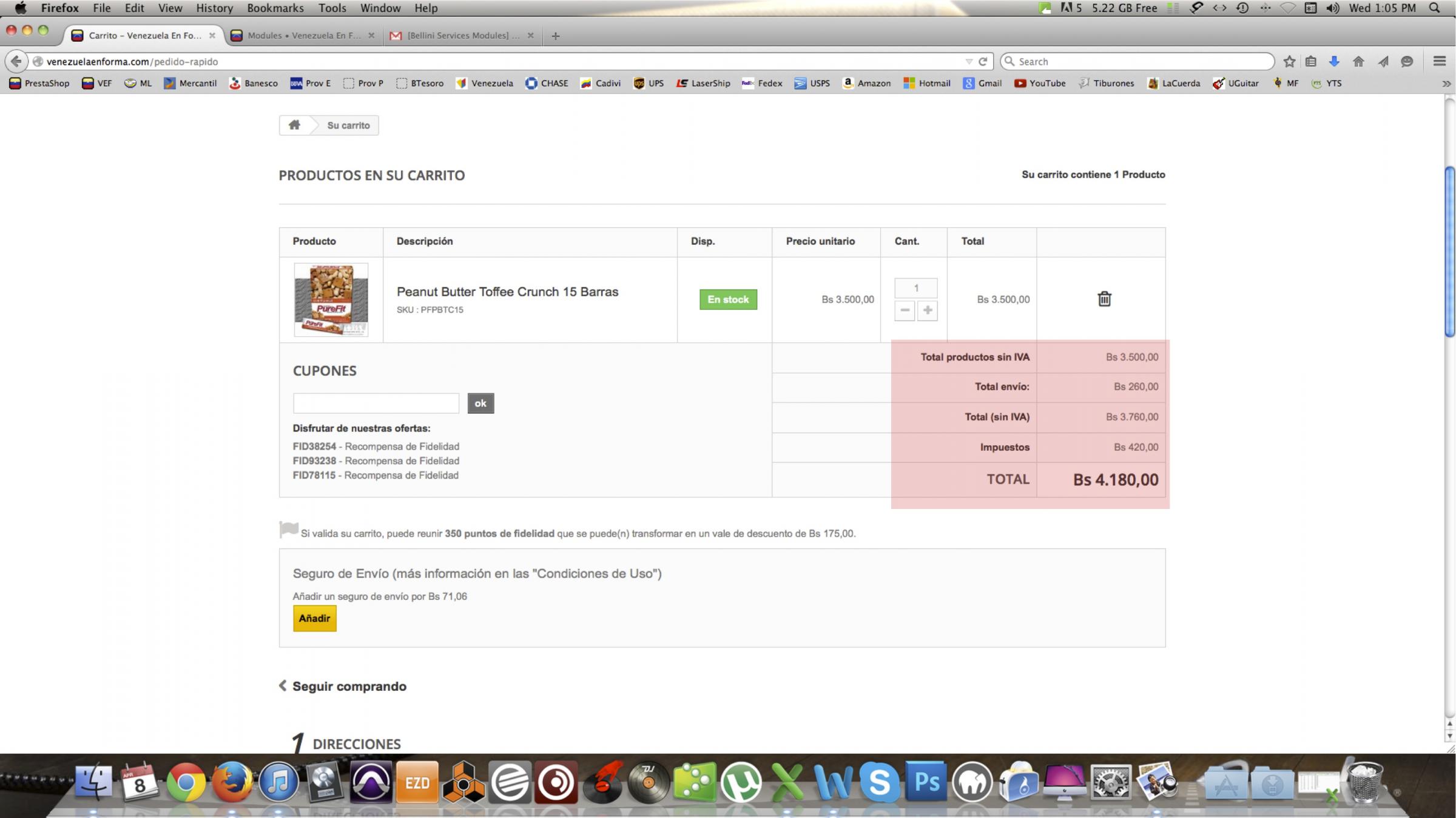 The module has an option "Show insurance ammount in cart" that I have activated but this does nothing.