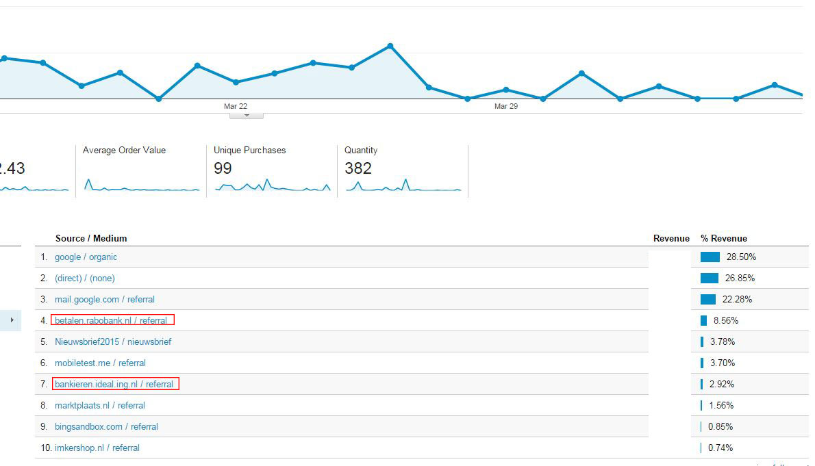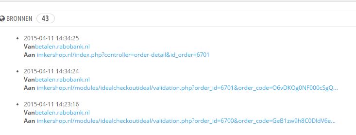 Smiles Posted April 11, 2015 Share Posted April 11, 2015 (edited) Ik heb een probleem met de google analytics module/prestashop. Sinds enkele dagen track hij de referals van banken als bron. Dit is natuurlijk niet goed. Een klant komt via een advertentie of google op de site à shopt à koopt à betaald en dan is de bank opeens de refferal. Terwijl de klant via google kwam. Prestashop doet overigens hetzelfde... Zie ook de bijlage. Iemand een idee hoe dit kan? Edited April 11, 2015 by Smiles (see edit history) Link to comment Share on other sites More sharing options...
