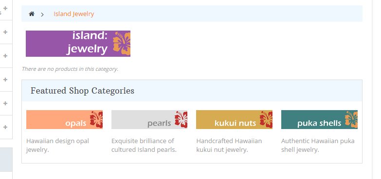 kamaaina Posted April 13, 2015 Author Share Posted April 13, 2015 see: It is the category landing page which displays the sub-category products (the page that only has a text category heading). 1. Main category: http://kamaainahawaii.com/3-island-wear-women 2. Sub-categories: http://kamaainahawaii.com/14-beachwear 3. Sub-categories landing page: http://kamaainahawaii.com/13-sarongs or http://kamaainahawaii.com/5-t-shirts-tees Link to comment Share on other sites More sharing options...