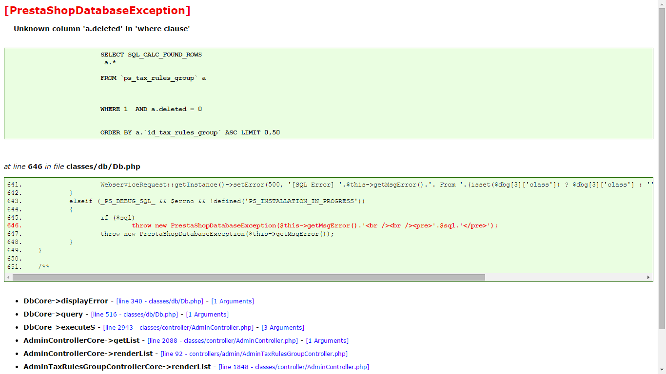 stijnmenkehorst Posted April 12, 2015 Share Posted April 12, 2015 Hi there, I get this msg, Unknown column 'a.deleted' in 'where clause' When I click the LOCALISATION --> VAT button in the menu. I deleted all the taxes, and now I have this. Please help me out. I am using PS 1.6.14 I attached the DEBUG result in the image. Not sure what to do with this.... Link to comment Share on other sites More sharing options...