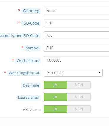dlik Posted April 18, 2015 Author Share Posted April 18, 2015 Wenn ich Schweiz importiere steht Franc zur Auswahl. Alles auf Germany inkl. Euro ergibt dasselbe Problem, keine Dezimalstellen Link to comment Share on other sites More sharing options...