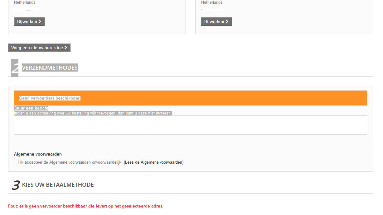 Carolad Posted April 18, 2015 Share Posted April 18, 2015 (edited) Heel raar, sinds kort werkt ineens de vervoerdersfunctie niet meer. Als ik een bestelling in de shop zet geeft hij in de frontend aan dat er geen vervoerders beschikbaar zijn. Terwijl deze toch echt ingevoerd zijn in de backend. Heb even printjes gemaakt van de schermen om het iets te verduidelijken. Weet iemand hier een oplossing op?? Zou er erg mee geholpen zijn, alles loopt nu per mail en losse facturen wat weer veel extra werk met zich mee brengt :-( * Aanvulling Alle vervoerders verwijderen en opnieuw aanmaken heeft ook geen soelaas gebracht, reeds driemaal geprobeerd maar zonder resultaat. Kan iemand misschien, al is het maar een klein beetje, mij een hint geven waar ik het anders nog in kan zoeken? Edited May 12, 2015 by Carolad (see edit history) Link to comment Share on other sites More sharing options...