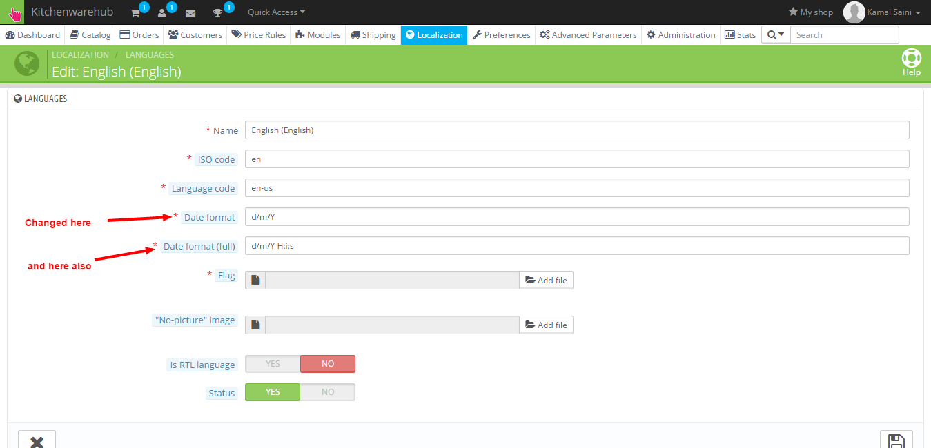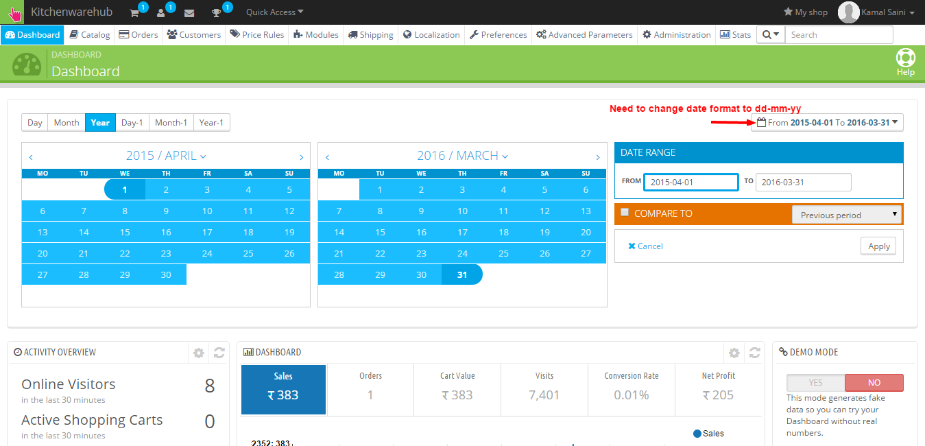 Need to change date format of dashboard