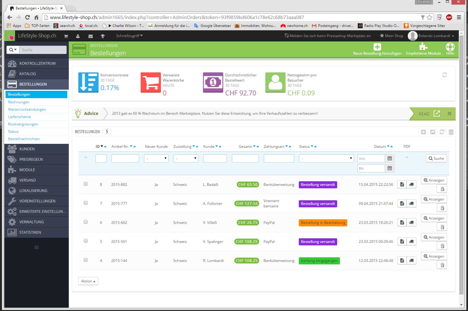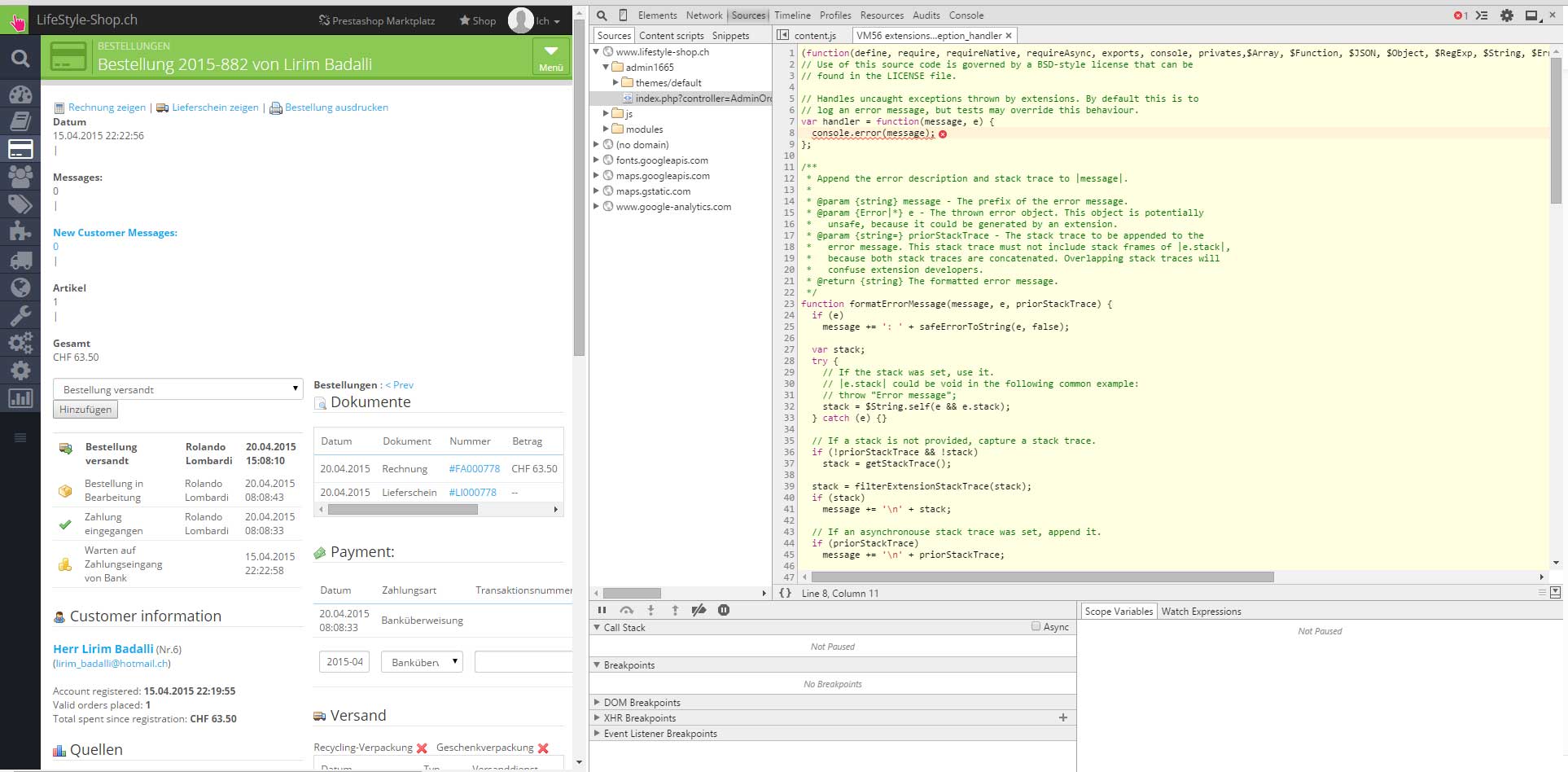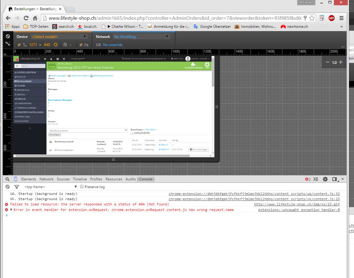 Birel34 Posted April 20, 2015 Author Share Posted April 20, 2015 Hallo Besten Dank für die schnelle Antwort. Haben nun im Google Chrom einmal einen Printscreen gemacht mit F12 und einmal wenn ich in Bestellungen drin bin Das Problem besteht bei allen Bestellung, wenn ich Bestellungen "Anzeigen Klicke. Im Bereich Bestellungen nicht (siehe Bild) Ich hoffe man sieht was aus den Bildern. Herzliche Grüsse Rolando Link to comment Share on other sites More sharing options...