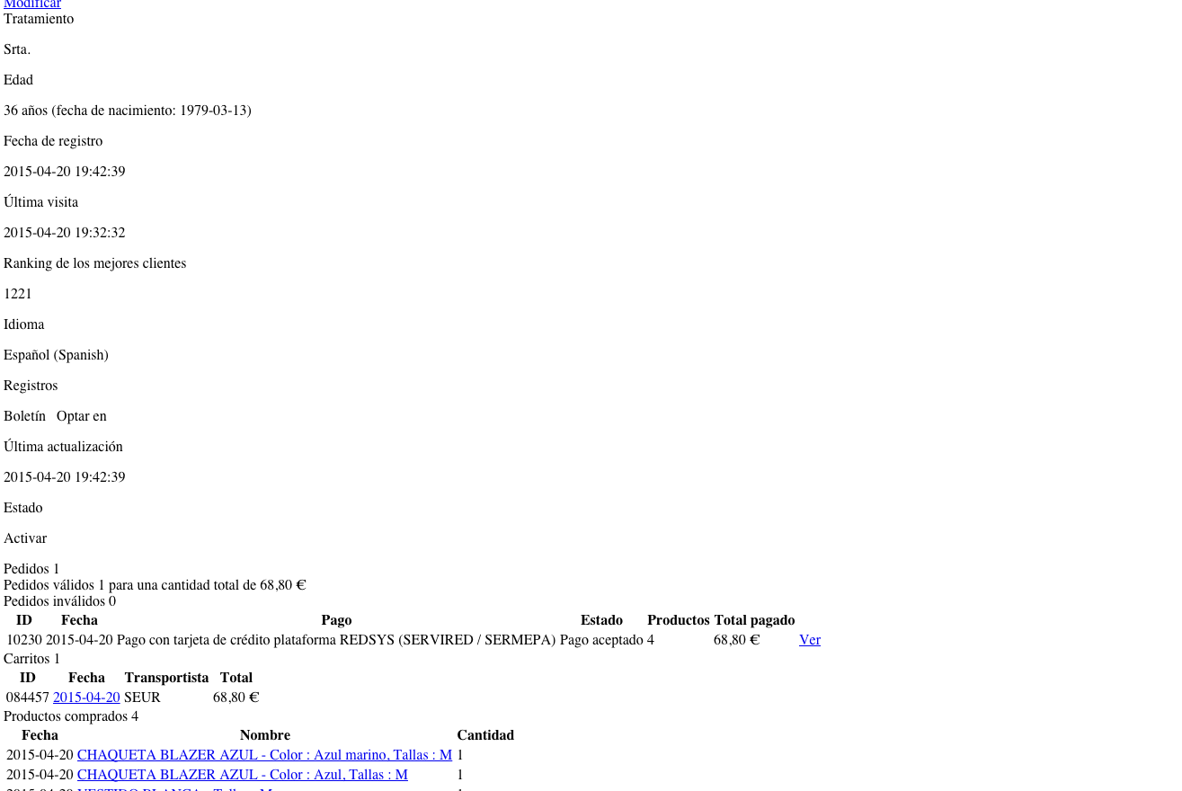 charliva Posted April 21, 2015 Share Posted April 21, 2015 Hi, i upgrade prestashop from 1.5 to 1.6 stable version. After upgrade all appears work perfectly but, when we tray to view customer details the page appears with no styles. the url for controller, view, tab is like: admintienda/index.php?controller=AdminCustomers&id_customer=13834&viewcustomer&token=98fa18696598d262c12163469aa83f22 here admintienda is the admin folder I attach two images, one for the customer view and other with the html structure (there are no css in head section). Any help? thanks!! Link to comment Share on other sites More sharing options...