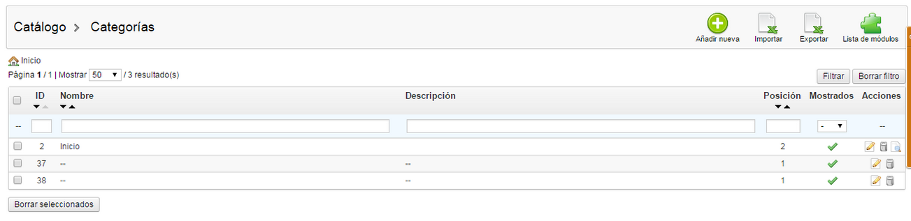 Isabella7 Posted April 22, 2015 Share Posted April 22, 2015 (edited) Hola, buenas tardes, estaba modificando las categorías de mi tienda online, no sé que he tocado, que ahora cuando entro en el panel de administración y pincho en categorías, se ve en la imagen que adjunto. Dentro de la categoría de Inicio, están todas las categorías, en vez de pinchar en Catalogo > Categorías y verse ya directamente las toda la lista de categorías. Como puedo solucionarlo? Muchas gracias. Edited April 22, 2015 by Isabella7 (see edit history) Link to comment Share on other sites More sharing options...