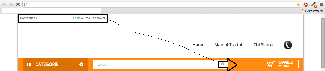 Munti23 Posted April 24, 2015 Share Posted April 24, 2015 Salve, come da immagine vorrei spostare (e successivamente modificare) tutta la parte relativa al Login ed inserirla nella barra arancione dove vi si trovano anche catetgorie, searchbar e carrello. Fino ad ora da novellino molte cose le ho risolte da me, ma in questa mi sono proprio bloccato. Grazie in anticipo Link to comment Share on other sites More sharing options...