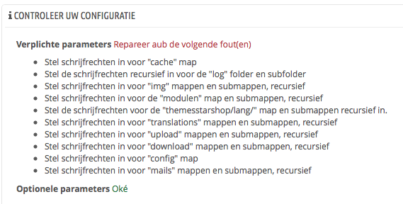 maconl Posted April 24, 2015 Share Posted April 24, 2015 (edited) de fout wordt al aangegeven :-) ingekort zie je ,,,, /cache/smarty/cache/leobootstrapmenu/ oftewel eenvoudig op te lossen ga met een ftp progje naar /cache/smarty/cache/ en verwijder alles wat in die laatse map cache zit ,, behalve index.php (als dit niet via ftp kan doe het dan via files middels je hosting omtrent de schrijfrechten probleem ook eenvoudig op te lossen echter alles 777 geven kan nadelig zijn maar bij je hosting is dit dus nodig anders werkt het niet goed ok daar gaan we zet de volgende mappen en onderliggende submappen (dus niet de bestanden !) op 777: Cache Img Log -> beetje vreemd dat deze 777 wilt hebben maar ok Modules Upload Download Mails config niks aan doen dan in je theme zie je een map mails deze geef je ook 777 Dat je dus niks kan opslaan wijzigen ligt puur enkel aan de schrijfrechten ,, omdat prestashop dus niks op de server kan schrijven ivm verkeerde schrijfrechten doet ie dus vreemd hoor graag of t gelukt is Edited April 24, 2015 by maconl (see edit history) 1 Link to comment Share on other sites More sharing options...