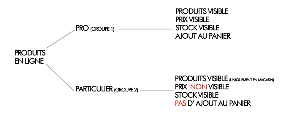 mehdi55 Posted April 28, 2015 Share Posted April 28, 2015 Bonjour à tous, Mon problème est le suivant : Sur mon site j'aimerai définir deux types d'autorisation pour mes produits : • Si le client est un professionnel (compte pro) : il peut consulter le produit, l'ajouter au panier, voir son prix et voir son stock. • Si le client est un particulier (compte particulier) : il peut consulter le produit ( uniquement vendu en magasin ), voir son stock, pas de prix produit et pas d'ajout au panier. Après avoir tester plusieurs choses avec les autorisations sur les groupes et les articles il s'avère que rien ne répond à ma demande. Merci de votre aide (s'il existe un module ou autre modifications du cms) Cordialement Link to comment Share on other sites More sharing options...