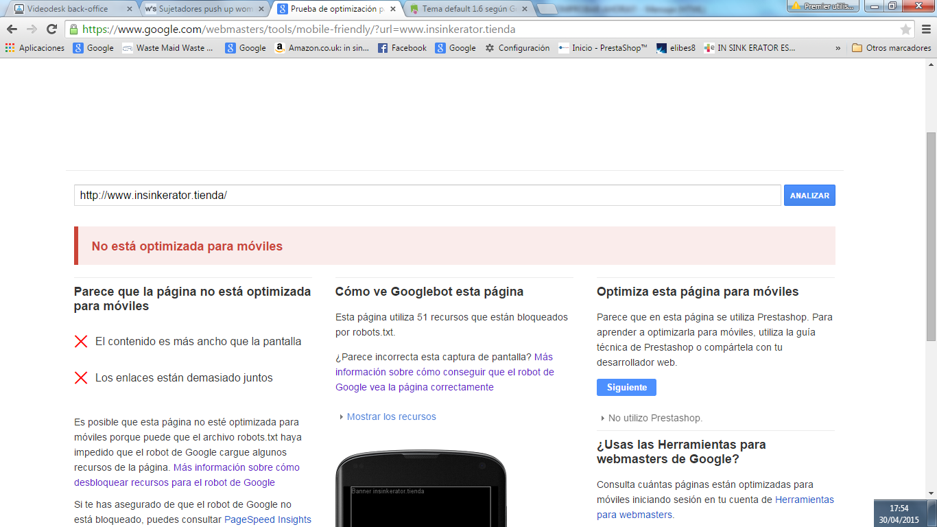 Tengo instalado el tema "Default" para Prestashop 1.6 y aunque dice estar activo el tema para móviles y tabletas y yo lo veo en el móvil, según Google no está optimizado, por lo tanto, no aparecerá en las búsquedas..La pregunta es: ¿Se puede hacer algo o es irremediable comprar e instalar un tema móvil responsive?