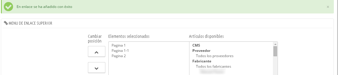 adcrea Posted May 1, 2015 Share Posted May 1, 2015 (edited) Estoy intentando configurar el menú horizontal en el theme por defecto prestashop 1.6, pero no puedo hacer lo que pretendo. No quiero categorías, sólo quiero que aparezcan unos cuantos CMS, y a poder ser, anidarlos unos en otros como submenús. Pero entro en la configuración del módulo y por un lado no me aparecen los CMS y por otro, no me deja crear unos dentro de otros. De momento, lo que he hecho es añadirlos como enlaces a la página del CMS de cada uno. Pero no puedo incluir uno como submenú del otro. Pongo una imagen que creo que se ve más claro. En la columna de la derecha donde pone CMS, no me aparece ninguno, y tengo más de 20 CMS creados. Alguien podría decirme cómo solucionarlo? Gracias. Edited May 1, 2015 by adcrea (see edit history) Link to comment Share on other sites More sharing options...