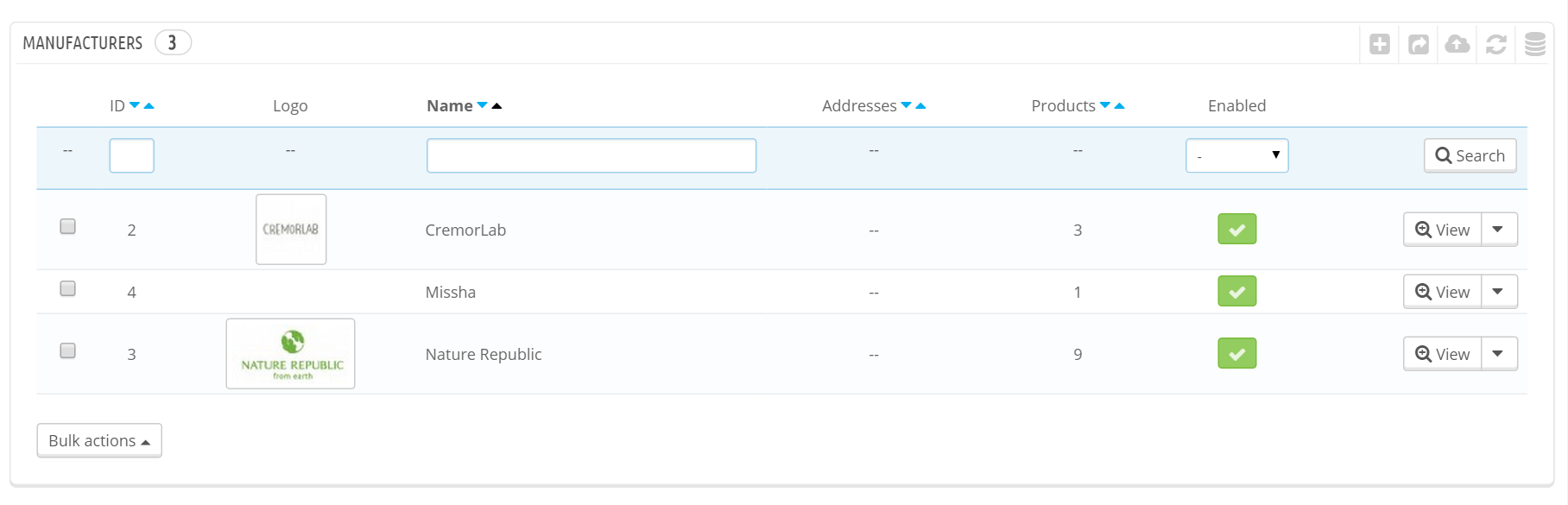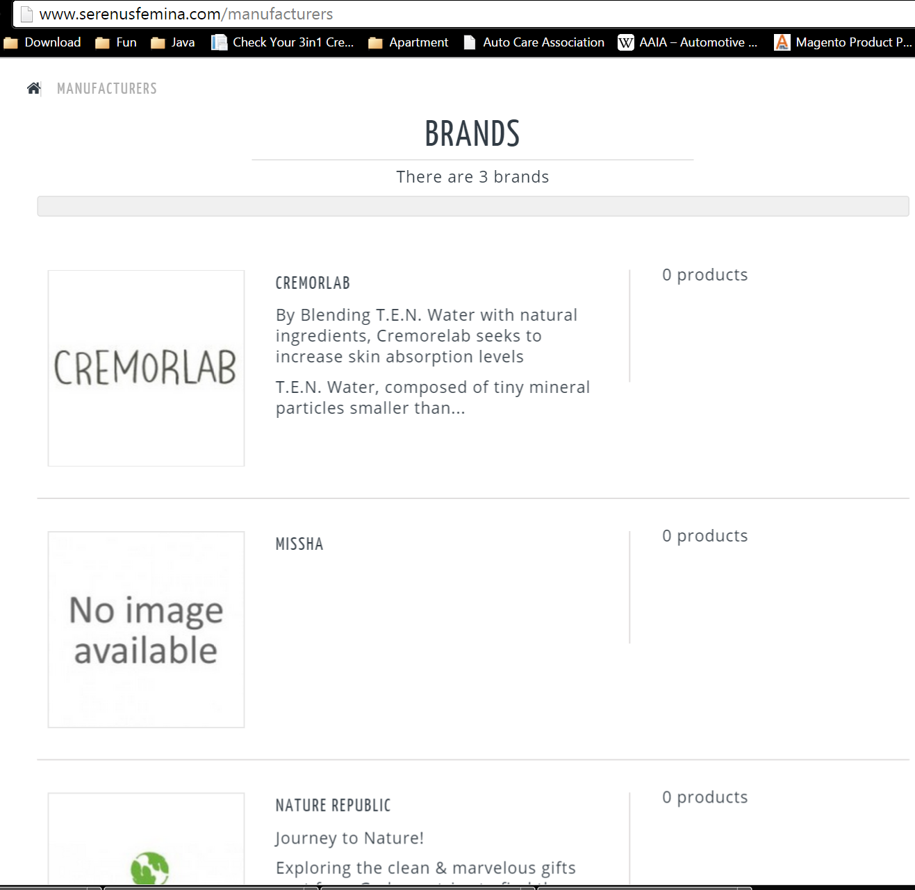 jkbae Posted May 4, 2015 Share Posted May 4, 2015 Hello, The product shows in the manufacture list in the back end, but it will not show on the front end. No matter what I do in the front side it displays "0" I have talked with the developer and he has no idea, and suggested me to try the forum. Please help me with this problem Link to manufacturers list: http://www.serenusfe...m/manufacturers Screen shots of problem: Backend Frontend Here is the: manufacturer-list.tpl {* * 2007-2014 PrestaShop * * NOTICE OF LICENSE * * This source file is subject to the Academic Free License (AFL 3.0) * that is bundled with this package in the file LICENSE.txt. * It is also available through the world-wide-web at this URL: * http://opensource.or...ses/afl-3.0.php * If you did not receive a copy of the license and are unable to * obtain it through the world-wide-web, please send an email * to [email protected] so we can send you a copy immediately. * * DISCLAIMER * * Do not edit or add to this file if you wish to upgrade PrestaShop to newer * versions in the future. If you wish to customize PrestaShop for your * needs please refer to http://www.prestashop.com for more information. * * @author PrestaShop SA <[email protected]> * @copyright 2007-2014 PrestaShop SA * @license http://opensource.or...ses/afl-3.0.php Academic Free License (AFL 3.0) * International Registered Trademark & Property of PrestaShop SA *} {capture name=path}{l s='Manufacturers'}{/capture} <div id="pagetab"> <h1 class="page-heading product-listing">{l s='Brands'}</h1> {strip} <p> {if $nbManufacturers == 0}{l s='There are no manufacturers.'} {else} {if $nbManufacturers == 1} {l s='There is 1 brand'} {else} {l s='There are %d brands' sprintf=$nbManufacturers} {/if} {/if} </p> {/strip} </div> {if isset($errors) AND $errors} {include file="$tpl_dir./errors.tpl"} {else} {if $nbManufacturers > 0} <div class="content_sortPagiBar"> <div class="sortPagiBar clearfix"> {if isset($manufacturer) && $manufacturer.nb_products > 0} <ul class="display hidden-xs"> <li class="display-title"> {l s='View:'} </li> <li id="grid"> <a rel="nofollow" href="#" title="{l s='Grid'}"> <i class="icon-th-large"></i>{l s='Grid'} </a> </li> <li id="list"> <a rel="nofollow" href="#" title="{l s='List'}"> <i class="icon-th-list"></i>{l s='List'} </a> </li> </ul> {/if} {include file="./nbr-product-page.tpl"} </div> <div class="top-pagination-content clearfix bottom-line"> {include file="$tpl_dir./pagination.tpl"} </div> </div> <!-- .content_sortPagiBar --> {assign var='nbItemsPerLine' value=3} {assign var='nbItemsPerLineTablet' value=2} {assign var='nbLi' value=$manufacturers|@count} {math equation="nbLi/nbItemsPerLine" nbLi=$nbLi nbItemsPerLine=$nbItemsPerLine assign=nbLines} {math equation="nbLi/nbItemsPerLineTablet" nbLi=$nbLi nbItemsPerLineTablet=$nbItemsPerLineTablet assign=nbLinesTablet} <ul id="manufacturers_list" class="list row"> {foreach from=$manufacturers item=manufacturer name=manufacturers} {math equation="(total%perLine)" total=$smarty.foreach.manufacturers.total perLine=$nbItemsPerLine assign=totModulo} {math equation="(total%perLineT)" total=$smarty.foreach.manufacturers.total perLineT=$nbItemsPerLineTablet assign=totModuloTablet} {if $totModulo == 0}{assign var='totModulo' value=$nbItemsPerLine}{/if} {if $totModuloTablet == 0}{assign var='totModuloTablet' value=$nbItemsPerLineTablet}{/if} <li class="{if $smarty.foreach.manufacturers.iteration%$nbItemsPerLine == 0} last-in-line{elseif $smarty.foreach.manufacturers.iteration%$nbItemsPerLine == 1} first-in-line{/if} {if $smarty.foreach.manufacturers.iteration > ($smarty.foreach.manufacturers.total - $totModulo)}last-line{/if} {if $smarty.foreach.manufacturers.iteration%$nbItemsPerLineTablet == 0}last-item-of-tablet-line{elseif $smarty.foreach.manufacturers.iteration%$nbItemsPerLineTablet == 1}first-item-of-tablet-line{/if} {if $smarty.foreach.manufacturers.iteration > ($smarty.foreach.manufacturers.total - $totModuloTablet)}last-tablet-line{/if}{if $smarty.foreach.manufacturers.last} item-last{/if} col-xs-12"> <div class="mansup-container animated bounceIn" style="visibility: visible;"> <div class="row"> <div class="left-side col-xs-12 col-sm-3"> <div class="logo"> {if $manufacturer.nb_products > 0} <a class="lnk_img" href="{$link->getmanufacturerLink($manufacturer.id_manufacturer, $manufacturer.link_rewrite)|escape:'html':'UTF-8'}" title="{$manufacturer.name|escape:'html':'UTF-8'}" > {/if} <img src="{$img_manu_dir}{$manufacturer.image|escape:'html':'UTF-8'}-medium_default.jpg" alt="" /> {if $manufacturer.nb_products > 0} </a> {/if} </div> <!-- .logo --> </div> <!-- .left-side --> <div class="middle-side col-xs-12 col-sm-5"> <h3> {if $manufacturer.nb_products > 0} <a class="product-name" href="{$link->getmanufacturerLink($manufacturer.id_manufacturer, $manufacturer.link_rewrite)|escape:'html':'UTF-8'}"> {/if} {$manufacturer.name|truncate:60:'...'|escape:'html':'UTF-8'} {if $manufacturer.nb_products > 0} </a> {/if} </h3> <div class="description rte"> {$manufacturer.description|truncate:180:'...'} </div> </div> <!-- .middle-side --> <div class="right-side col-xs-12 col-sm-4"> <div class="right-side-content"> <p class="product-counter"> {if $manufacturer.nb_products > 0} <a href="{$link->getmanufacturerLink($manufacturer.id_manufacturer, $manufacturer.link_rewrite)|escape:'html':'UTF-8'}"> {/if} {if $manufacturer.nb_products == 1} {l s='%d product' sprintf=$manufacturer.nb_products|intval} {else} {l s='%d products' sprintf=$manufacturer.nb_products|intval} {/if} {if $manufacturer.nb_products > 0} </a> {/if} </p> {if $manufacturer.nb_products > 0} <a class="btn btn-default button exclusive-medium" href="{$link->getmanufacturerLink($manufacturer.id_manufacturer, $manufacturer.link_rewrite)|escape:'html':'UTF-8'}"> <span> <i class="icon-reorder left"></i> {l s='view products'} </span> </a> {/if} </div> </div> <!-- .right-side --> </div> </div> </li> {/foreach} </ul> <div class="content_sortPagiBar"> <div class="
