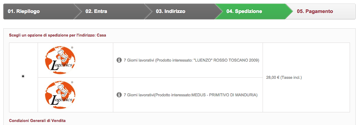 beadle Posted May 4, 2015 Share Posted May 4, 2015 Salve a tutti, ho creato un ecommerce con prestashop per un cliente, vendita di vini con ordine e spedizione direttamente dalla cantina. Il cliente vuole che ogni cantina abbia la sua spedizione, quindi se compro VinoA da CantinaA avrà un costo di spedizione e se aggiungo un VinoB da CantinaB deve aggiungere un ulteriore costo di spedizione. Settato tutto e funzionante per il calcolo delle spedizioni, l'unico problema è che quando arrivi allo step del pagamento va in crisi perchè vede 1 spedizione con 2 corrieri per un ordine e se procedi cliccando per il pagamento ricarica lo step spedizioni e quindi non gli piace la cosa. Da ricerce fatte non ci dovrebbe essere la soluzione. Qualche info a riguardo o qualche bel modulo spedizioni che faccia questo? Allego schermata. grazie in anticipo Link to comment Share on other sites More sharing options...